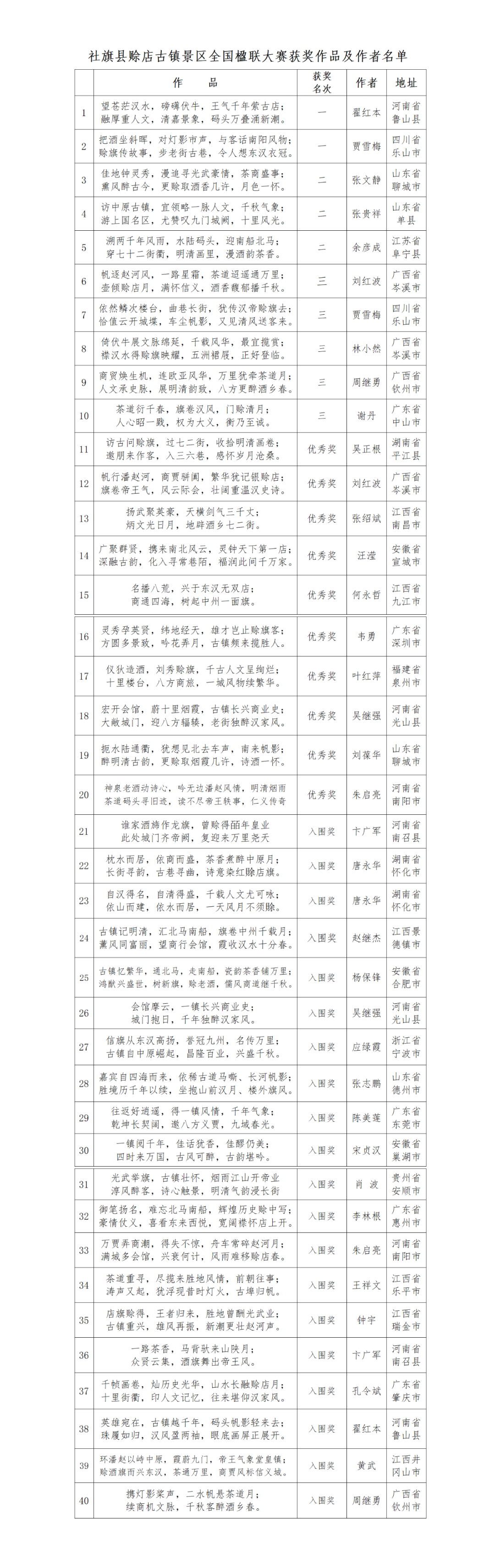 附:社旗县赊店古镇景区全国楹联大赛获奖作品及作者名单 社旗县赊店古镇景区全国楹联大赛征集活动组委会2023年5月12日  附件