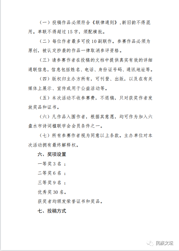 (二)每位作者最多可投10副联作。参赛作品必须为原创,被认定抄袭的作品一律取消参评资格。