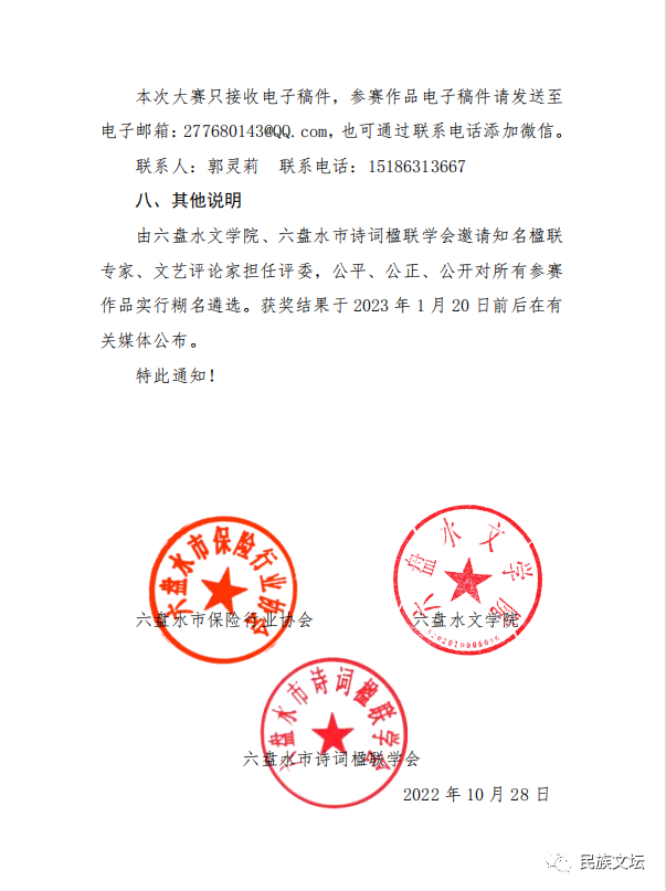 (六)凡作品入围作者,根据其意愿,均可作为加入六盘水市诗词楹联学会会员条件之一。